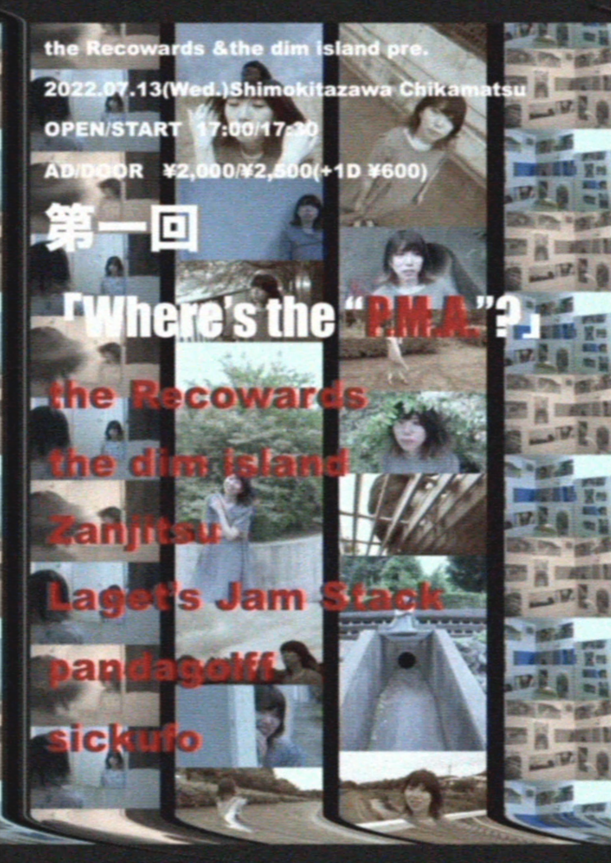 また、7月13日(水)には東京・下北沢近松にて、第一回「Where’s the “P.M.A.”?」をthe dim islandと共催で開催。造語であるP.M.A.(Positive Mental Attitude)の再定義を掲げ平日のライブハウスから発起したイベントとなる。