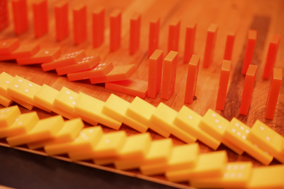 19時から4チームが作り上げたドミノ倒し集計が行われた。
