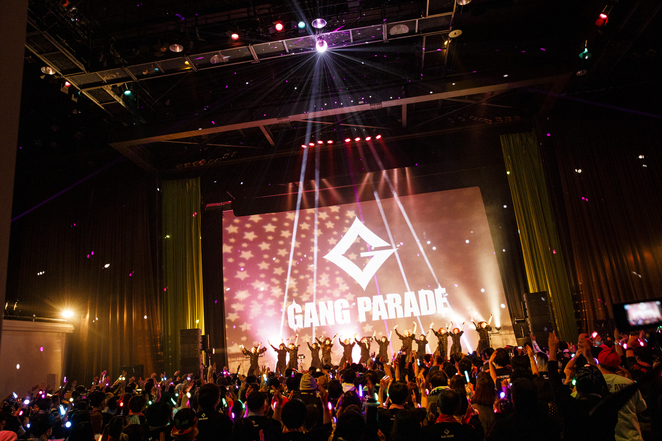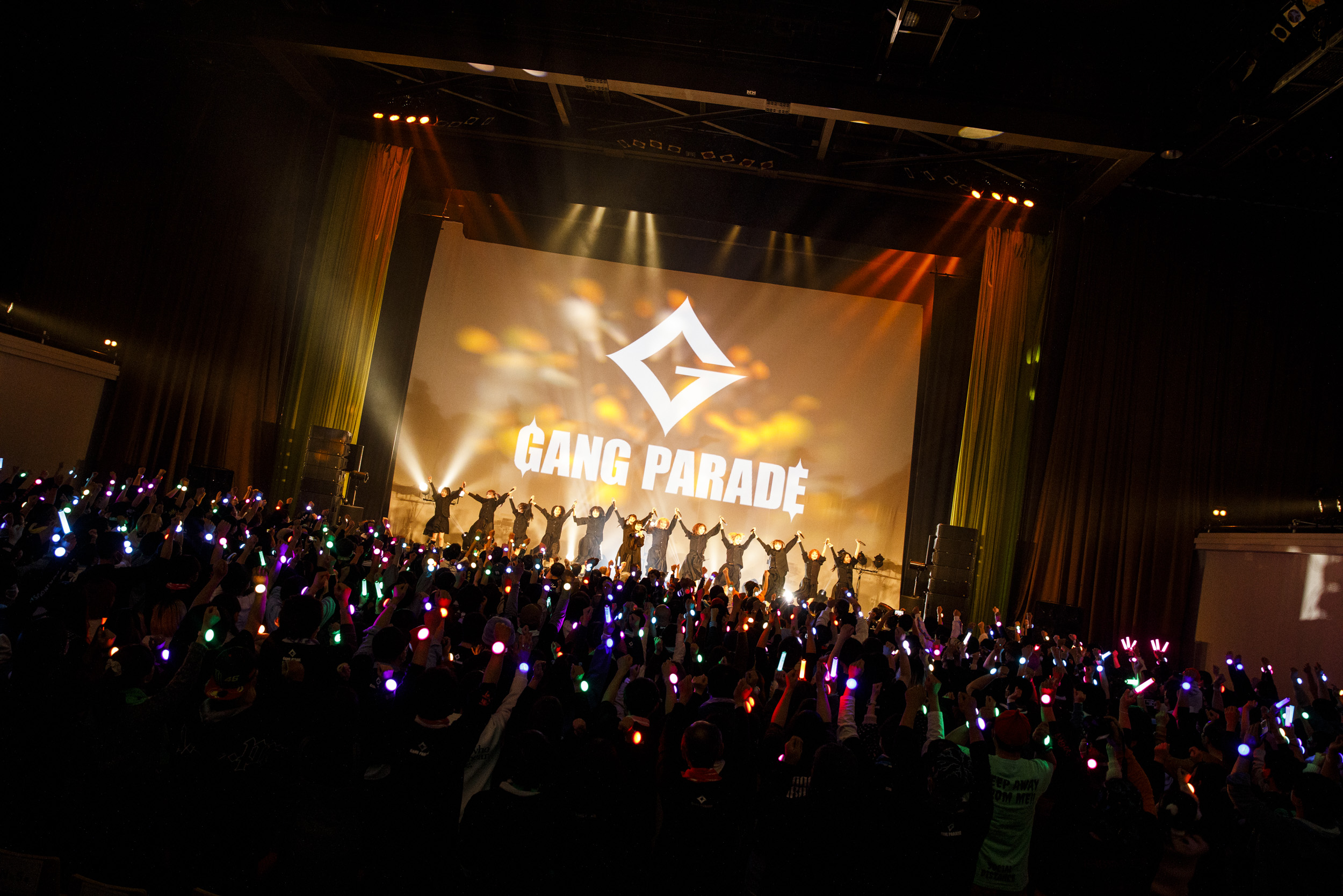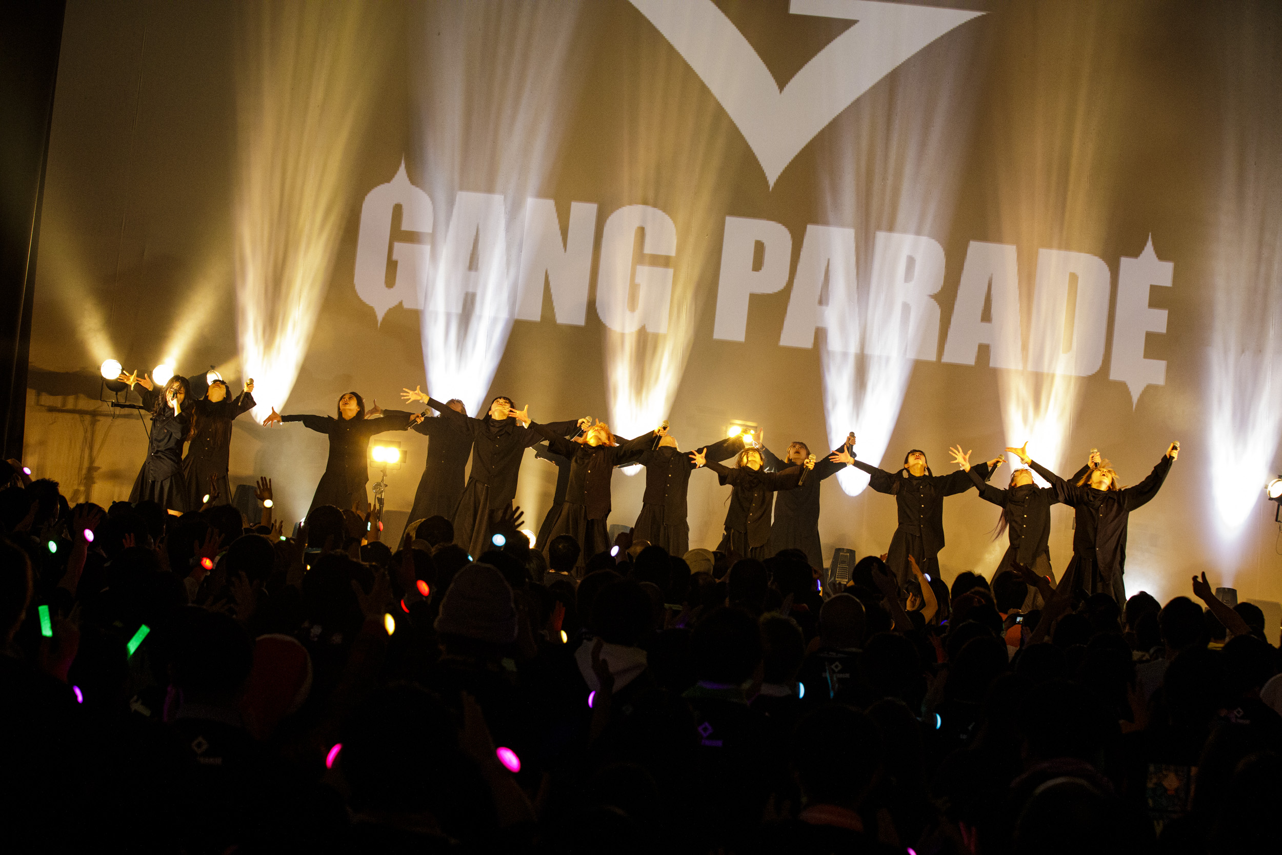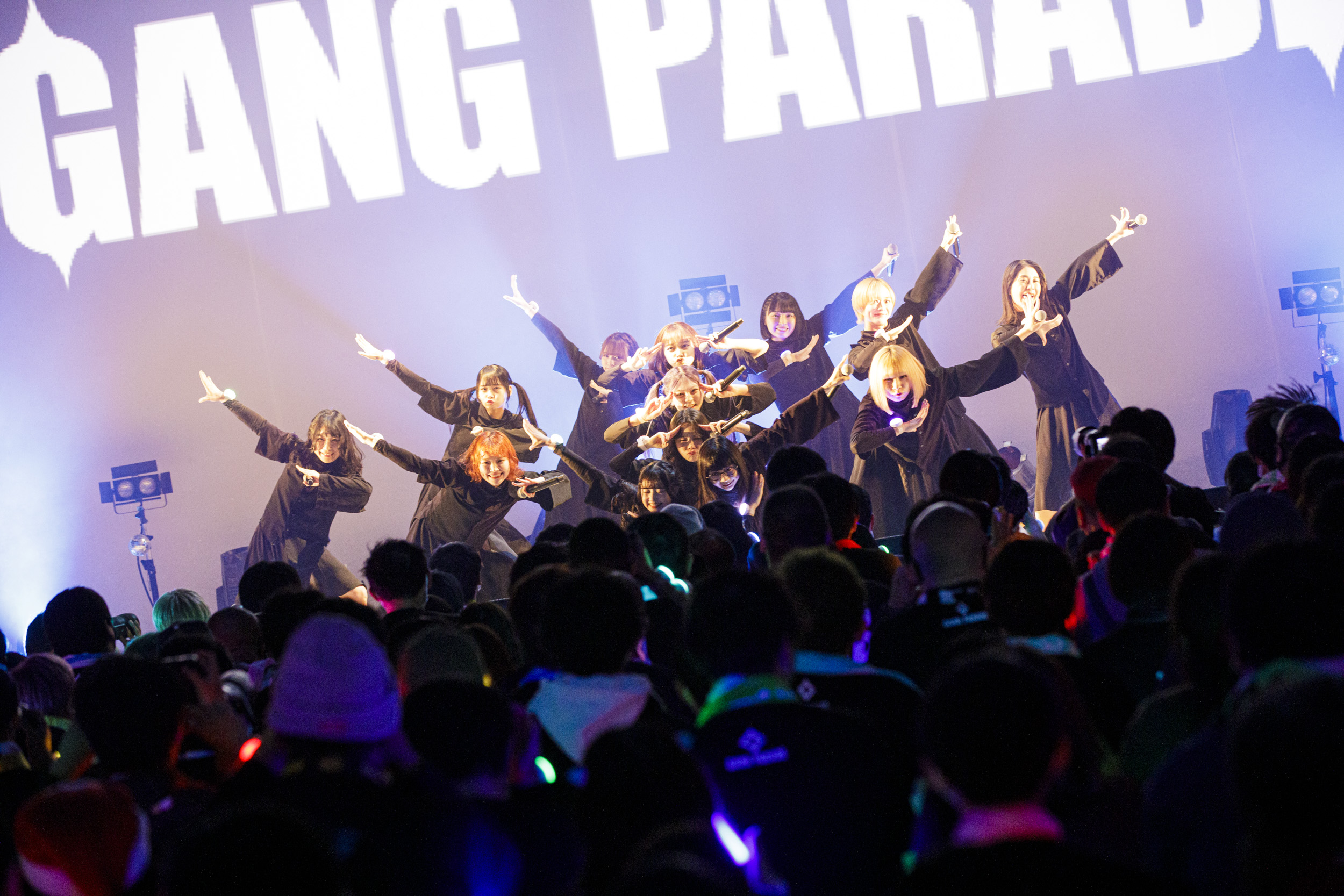サンリオのカチューシャをつけたり、クリスマスらしいコスプレをした遊び人(※GANG PARADEファンの総称)たちが集まった会場にお馴染みのSEが流ると、ヤママチミキ、ユメノユア、キャン・GP・マイカ、ココ・パーティン・ココ、テラシマユウカ、ユイ・ガ・ドクソン、月ノウサギ、キラ・メイ、チャンベイビー、キャ・ノン、ナルハワールド、アイナスター、カ能セイ、13人のメンバーたちがステージに登場した。