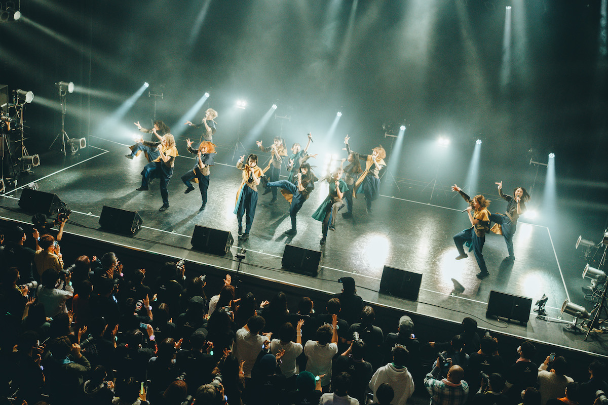 そして、ワーナー・ミュージック・ジャパン内レーベルFUELED BY MENTAIKOよりメジャーデビューを果たしたシングル曲「ブランニューパレード」、メジャー1stアルバム『LOVE PARADE』のリード曲「らびゅ」を13人で披露。インディー期とは違うパレード感とハッピーバイブスに溢れたメジャーらしい楽曲をパフォーマンスした。