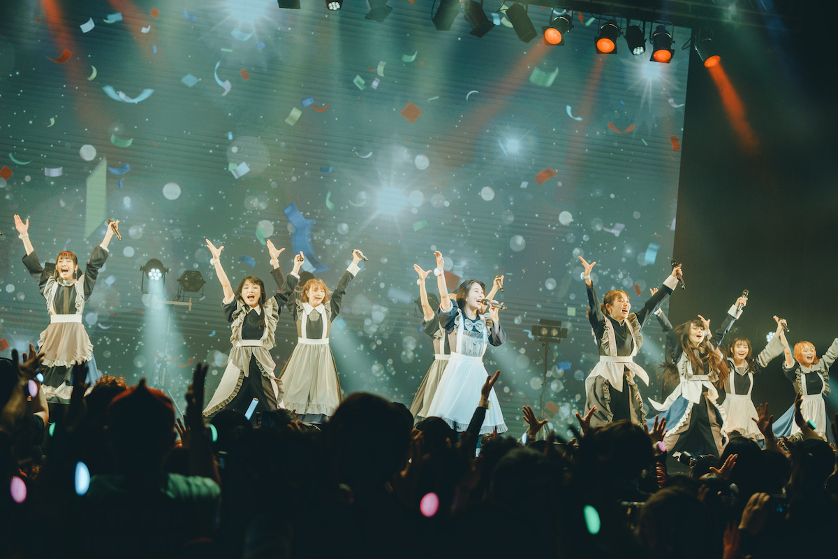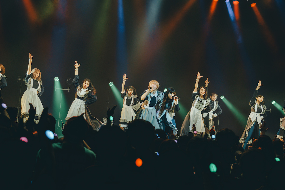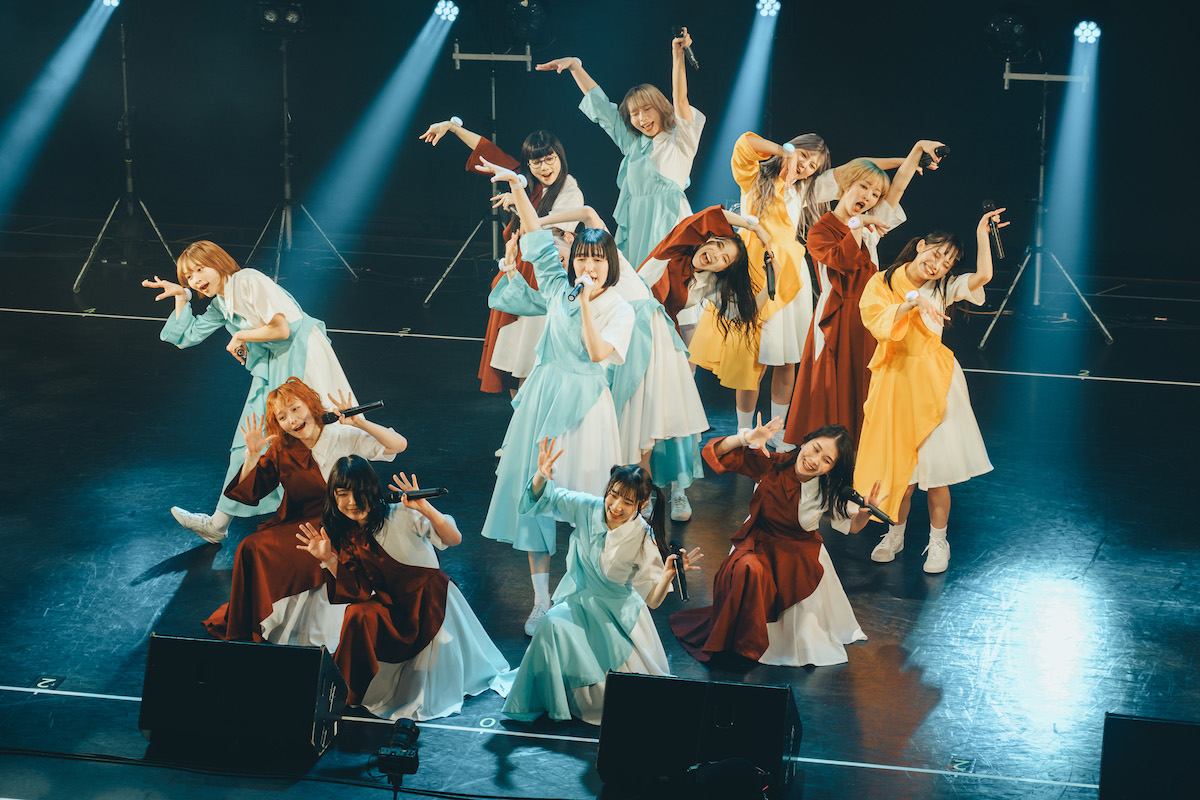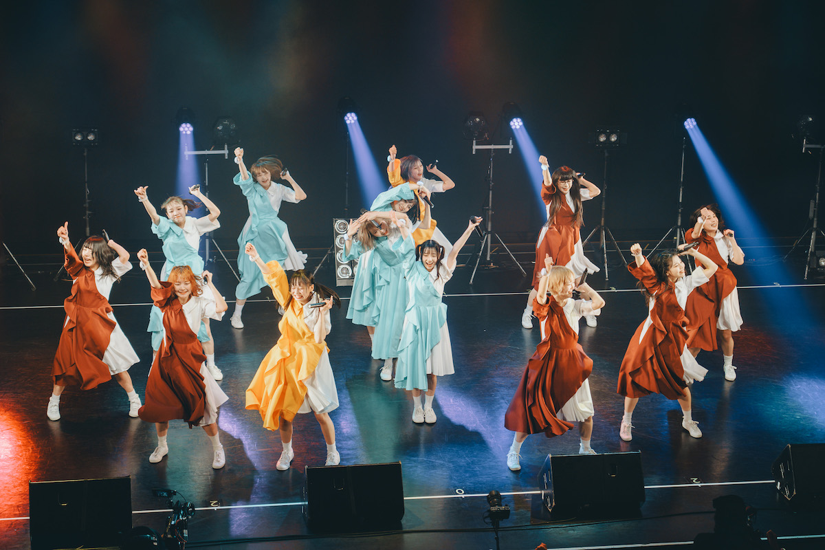 そのまま生まれ代わりを歌った「赤ちゃん」、ヘヴィーながらメロディアスさももった「マジ神」を13人で俊敏にパフォーマンスすると、ギャンパレの遺伝子を強く感じさせるエモーショナルな楽曲「OK」、そして柏木由紀とのコラボ・シングル企画で誕生した楽曲「TRUE SONG」と、レア曲含む8曲を13人体制で力一杯パフォーマンスしステージを後にした。