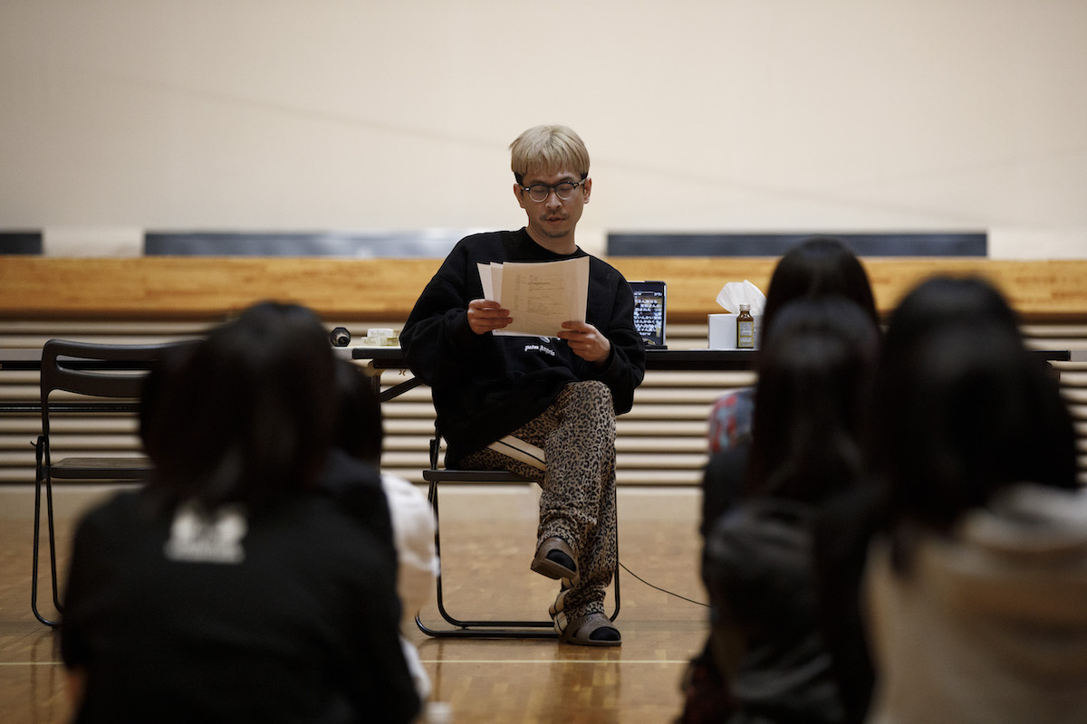 3つのグループが大体育館で、1つのグループが2階の小体育館で練習をしながら、1人3分ずつ渡辺淳之介との個別面談を交代で行っていった。その様子もすべてニコニコ生放送で中継された。