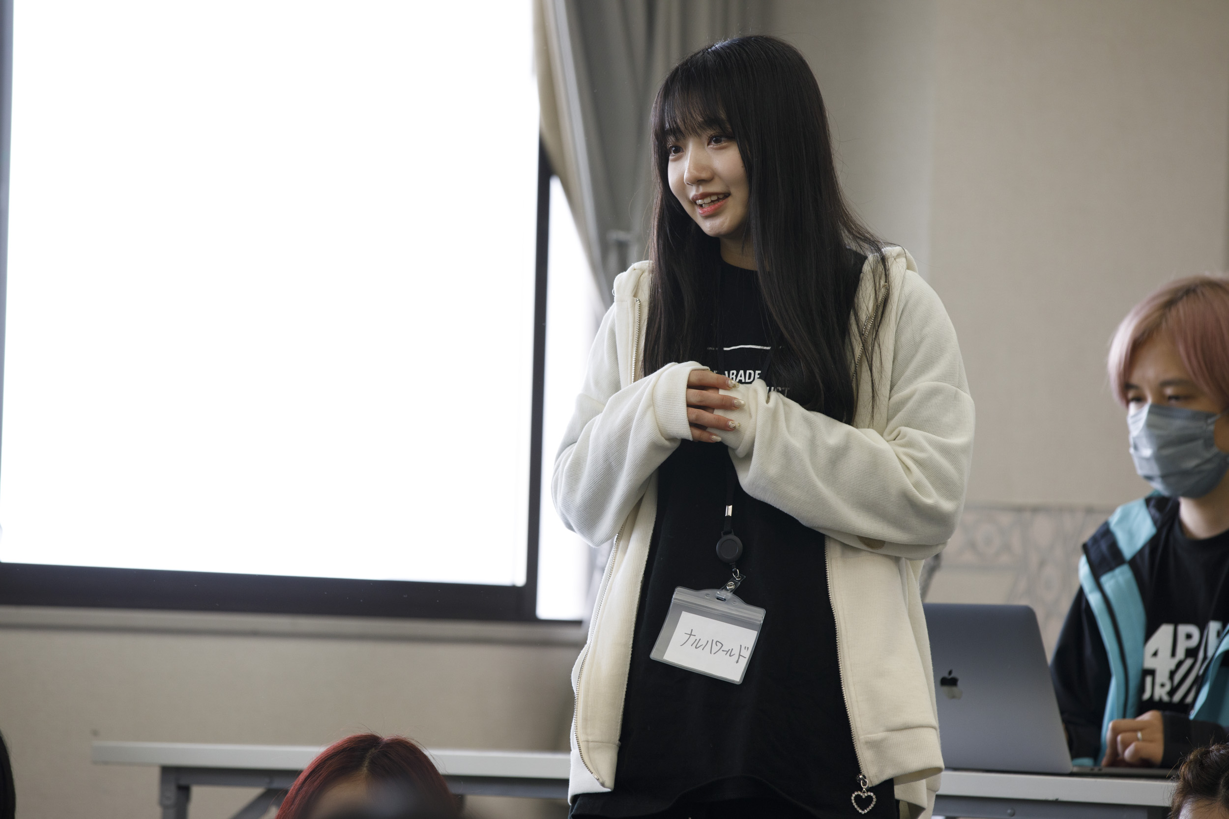 初めて合宿に来た時は、本当にどうなってもいいっていうのがあって。学校もそんな好きではなかったし、ピアノを習っていたぐらいで、それ以外で興味があるのがWACKだけだったから、本当にWACKのことを考えて1週間が終わった合宿でした。初めて合宿に参加した時みたいに、それだけに集中みたいなものが今ないから。そうするために自信をつけるのが私には1番合っている。やりたいことや目標を見つけて、そのためにコツコツ頑張ることがめっちゃ大事なのかなと思っています。