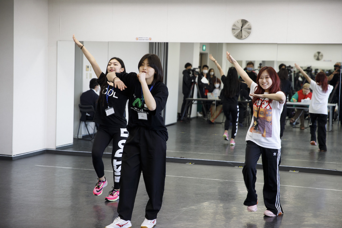 最後は、maho、チャンアダルト、レオナイクスワイズの3人組。2組目と同じ構成で「FOUL」と「STUPiD」をパフォーマンス。しなやかな動きで「FOUL」を披露すると、「STUPiD」では激しい動きを取り入れつつ、メンバー同士で歌詞を忘れてしまったパートをカバーしながら歌い踊った。