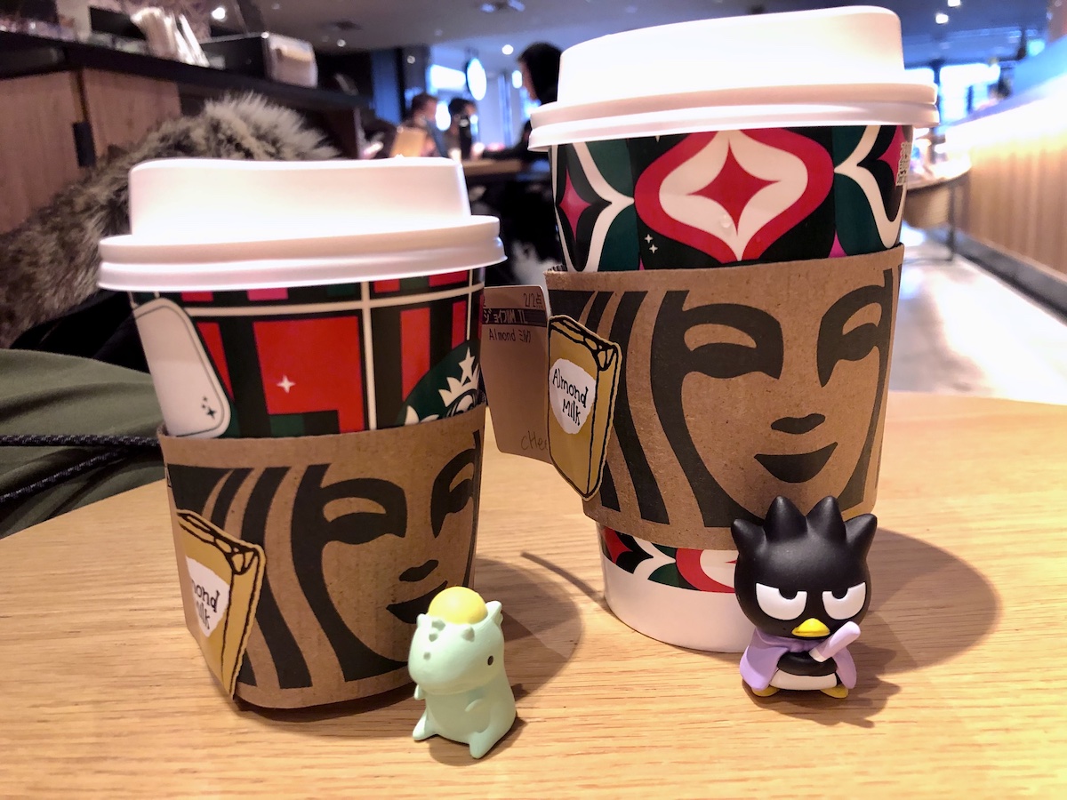 ジョイフルメドレーティーラテ アーモンドミルクに置き換え。これリアルに最近のマイブーム。美味しいです。〜本日のガチャガチャ戦利品を添えて〜