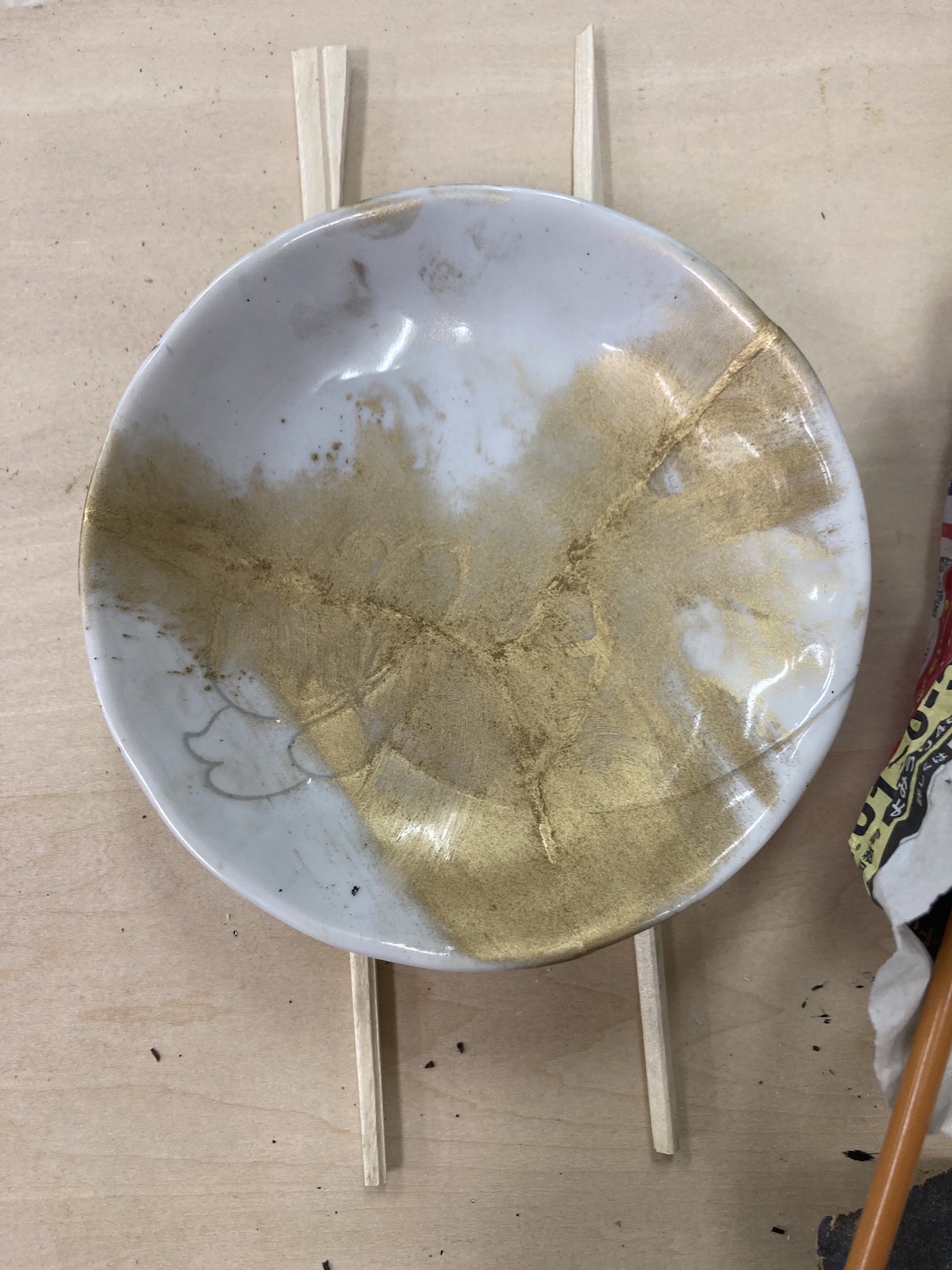 漆の授業です。金粉高いから気をつけてねって言われた次の瞬間ぶちまけました。
