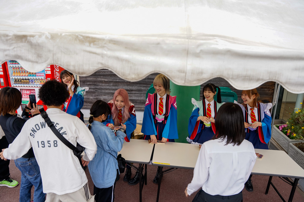 ライヴ後にはすっかり雨もあがり、あたたかくゆったりとした気候に。そんなほのぼのとした特典会が行われ、まったりした時間が流れていった。17時のフードアクティビティの時間になっても遊び人の列が途切れることがなく、去年よりも明らかにファンの数が多くなっている様子が垣間見えた。