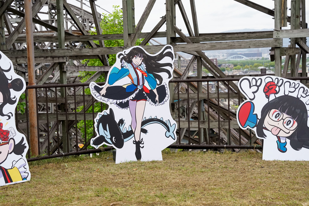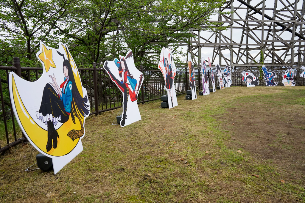 そして、去年と同じくメンバーたちのパネルも設置された。去年と違うのは、全員分のパネル展示が、世界的アニメーター・すしおによるイラストという点。そして、それ以外に13人の実写パネルが園内にバラバラに設置。遊び人たちはスタンプラリー方式で各メンバーのパネルを探す楽しみが用意されていた。パネル後ろには、メンバーの漢字式名前のスタンプが設置されており、専用用紙に押してスタンプを集めていくことができる。こうした新しい取り組みも嬉しい。