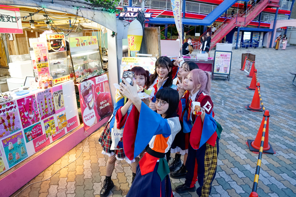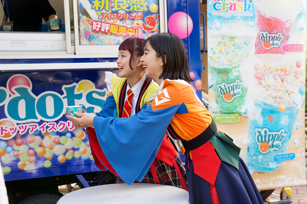 特典会と並行して、17時からはフードアクティビティを実施。17時〜17時45分まではキャン・GP・マイカとチャンベイビー、17時45分〜18時30分まではヤママチミキとキャ・ノンが、ディッピンドッツ・アイスクリーム キッチンカーにて購入商品を渡してくれた。ここでも長蛇の列ができ、遊び人たちはメンバーから手渡されるアイスを大切そうに受け取っていった。