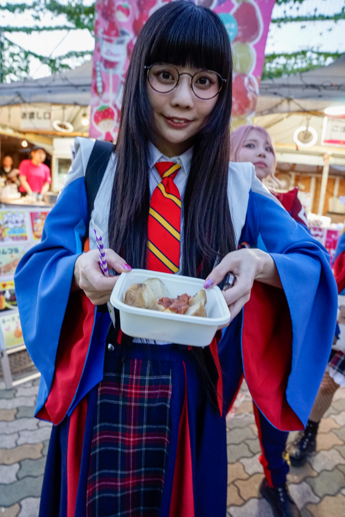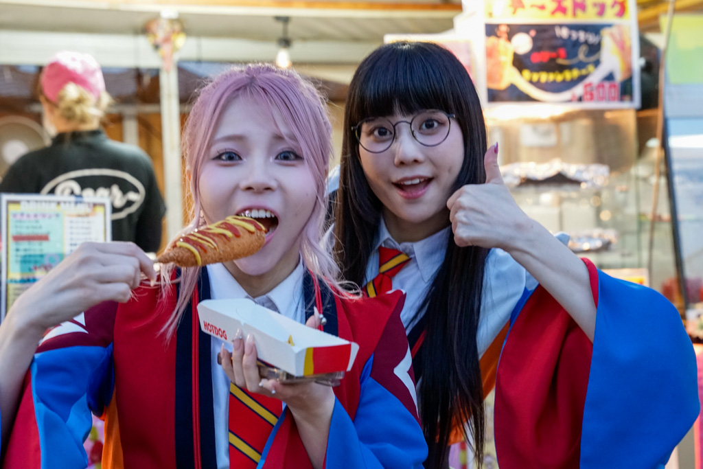 合間の時間にフードを購入して楽しむメンバーたち。写真はアイナスター
