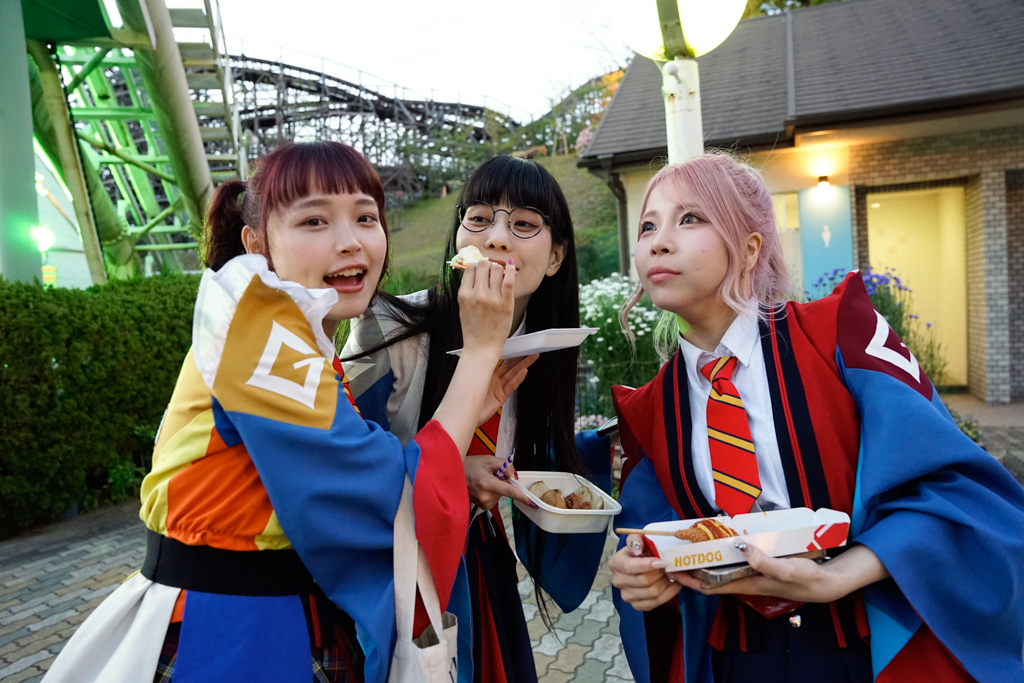 フードアクティビティの終了時間である18時半になるまで特典会の列は途切れることなく、最後までギャンパレメンバー、そして遊び人たちはひらパーを満喫し尽くした。こうしてギャンパレとひらかたパークによる2回目の「遊び場」は、昨年以上に充実したものとなった。すべてが終了したあと、ひらパーのスタッフたちとギャンパレメンバー全員で記念撮影。その光景もほのぼのしていてとても微笑ましいものだった。気は早いが、3回目のコラボも期待されるところ。2者の生み出す「遊び場」の可能性をさらに感じる2回目のコラボとなった。