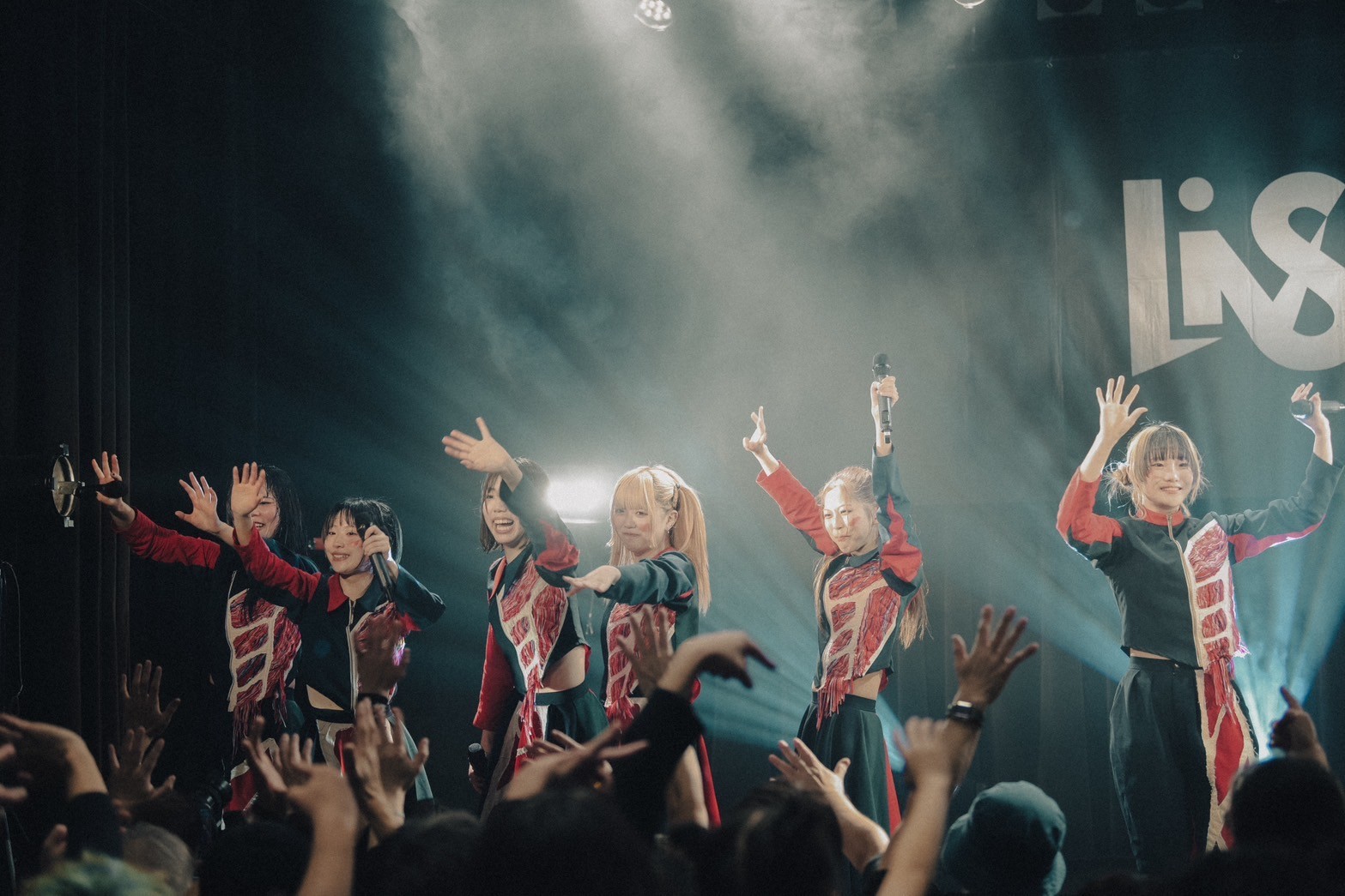 目撃者たちによる大きなアンコールが起こるフロア。しばらくアンコールの声援が続くと、「Don’t Look Back」のイントロが流れ、6人が走ってステージに再登場した。エモーショナルで前向きなギターロック曲を笑顔で歌うと、〈THE LAST CHANCE PROJECT〉で脱落した候補生からの一通の手紙から出来上がったLiVSの代表曲「ONE」を、それまでにも増して感情たっぷりにパフォーマンス。