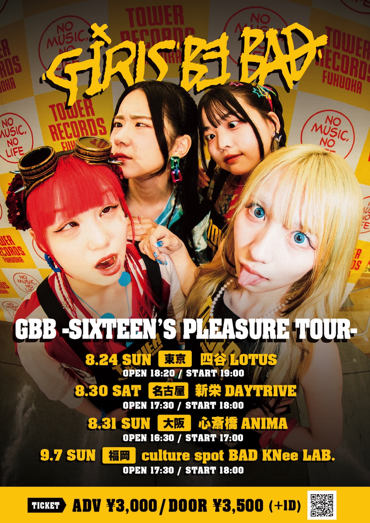 松隈ケンタが総合プロデュースを手がける初のガールズグループ・GBB(Girls be bad)が、8月20日(水)に2ndアルバム『sixteen’s pleasure』をリリースする。それに合わせて、新たなアーティスト写真の公開、全国4都市を巡るツアー「GBB -SIXTEEN’S PLEASURETOUR-」および全国各地のタワーレコードでの発売記念イベントの開催が発表された。
