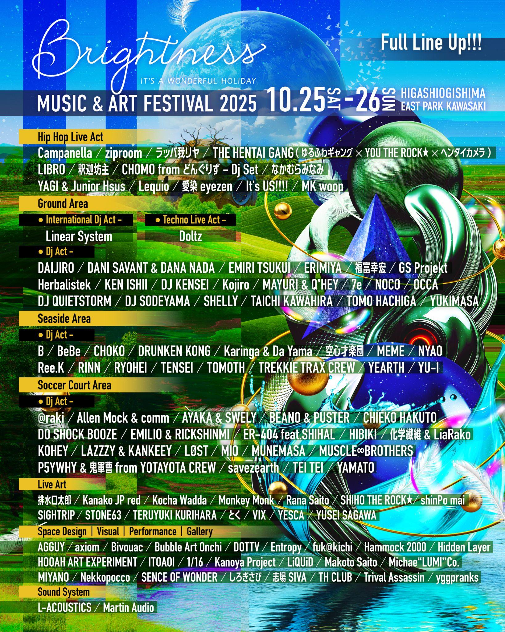 2025年10月25日(土)〜26日(日)、神奈川県・川崎 東扇島東公園にて開催される 「Brightness Music & Art Festival 2025」。