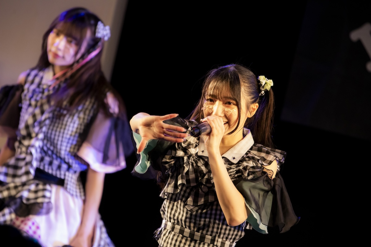 続く「チョコキス!!」は2024年リリースのバレンタインソング。アップテンポな楽曲が続き会場のボルテージを一気に上げていく。3曲目は「ファンファーレ」。明るく楽しいアイドルソングで、「一緒にクラップしてください!」との煽りに、会場は一体となってクラップを響かせた。