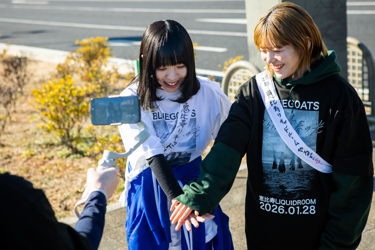 マラソン日和といえるほどの快晴。気温も温かい。伊勢崎駅には、彼女たちを応援しようと30人近くのNOMADS(※ファンの総称)が駆けつけていた。