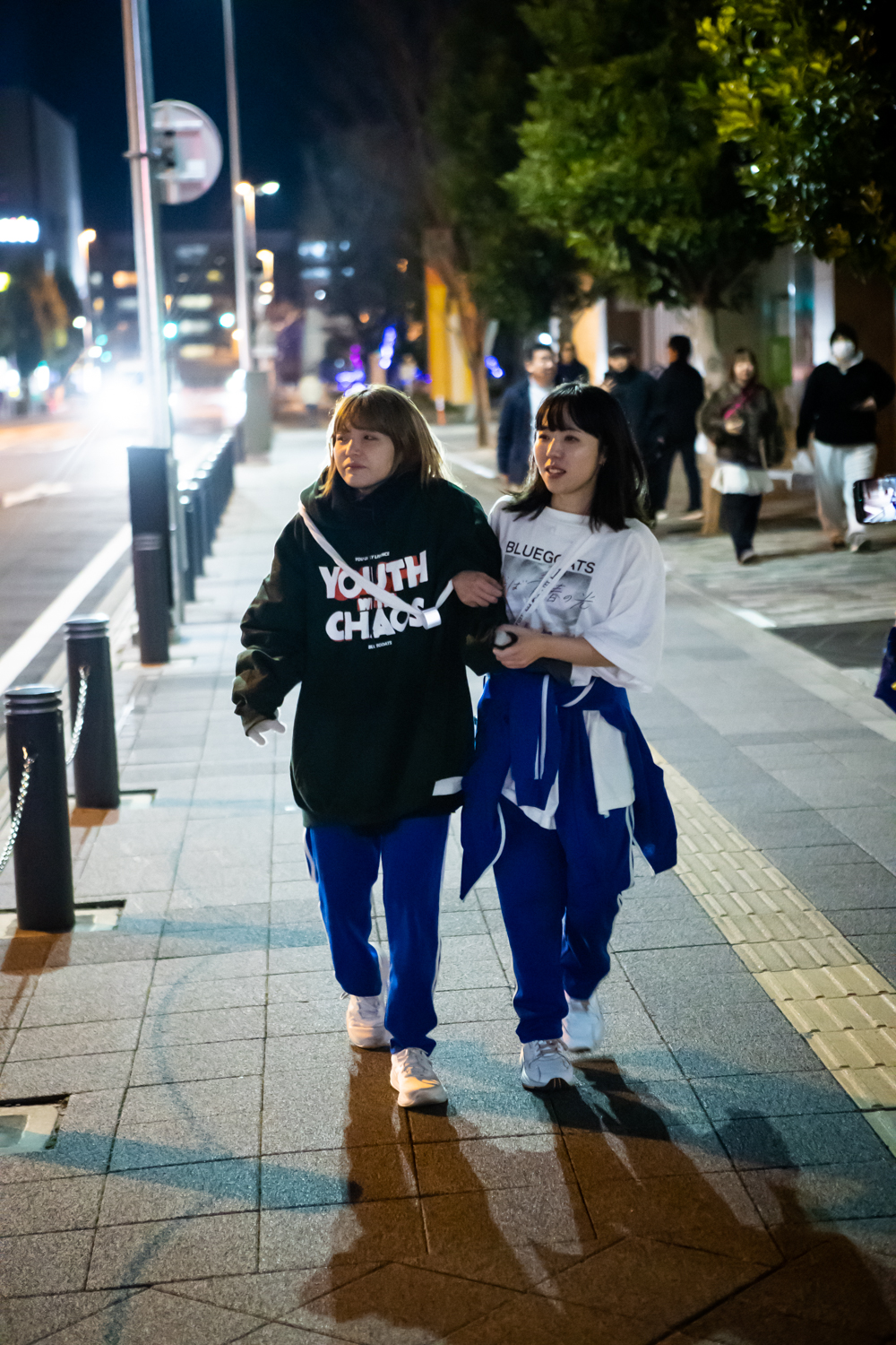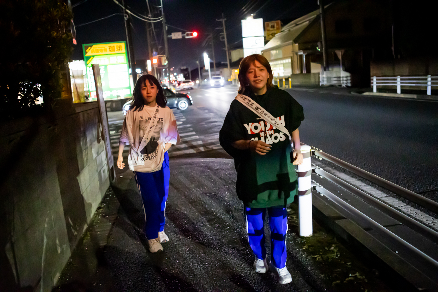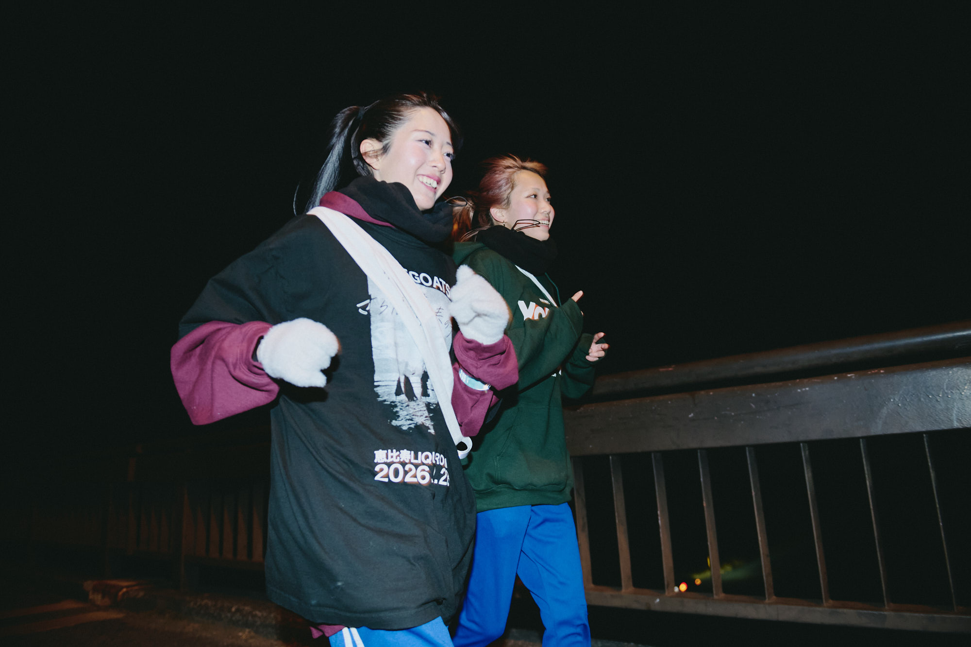 5時20分頃、約85km地点。残りあと5kmで、この日のゴール池袋駅だ。身体はきついはずなのに、カメラを向けると笑顔でその場を明るく照らす2人。