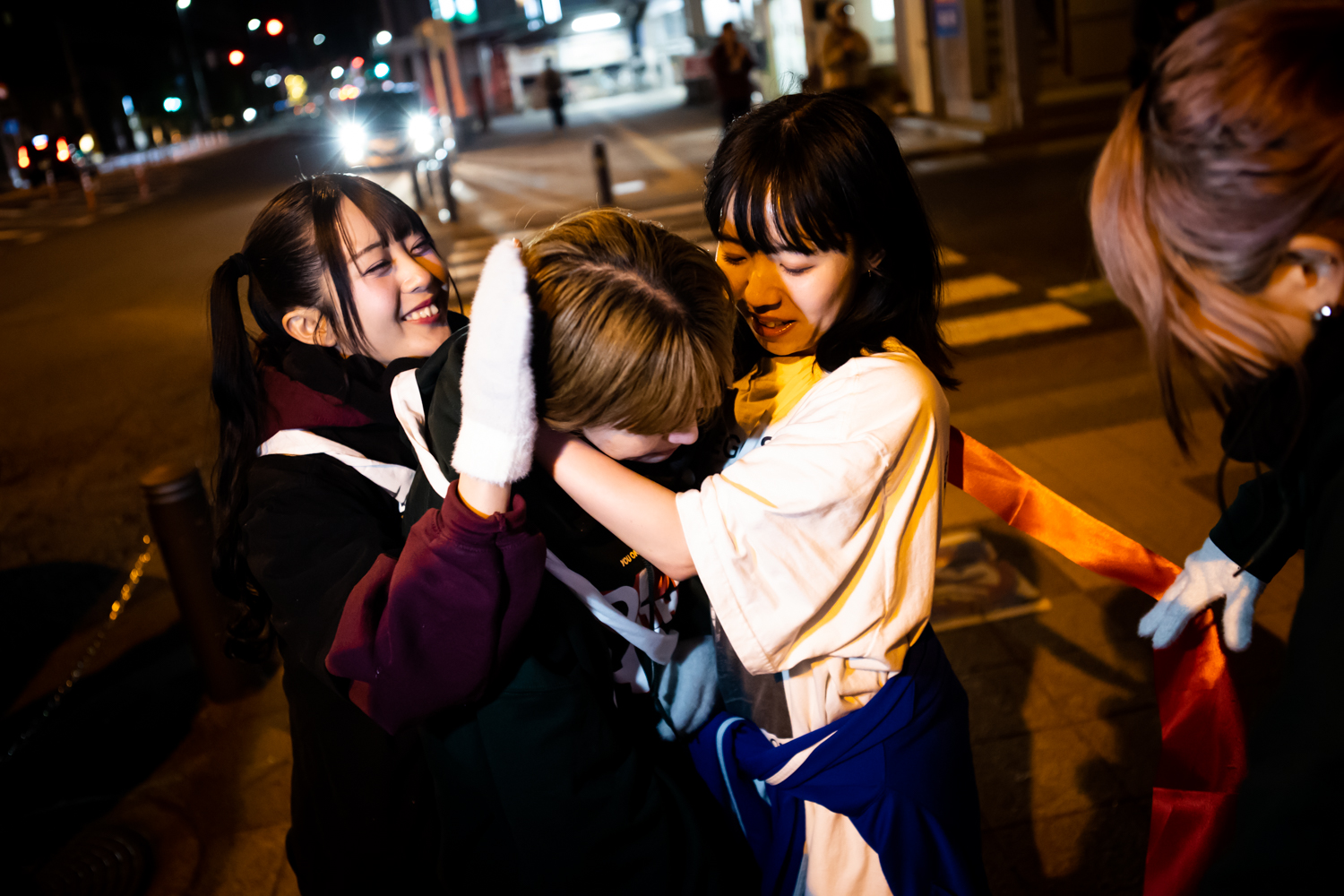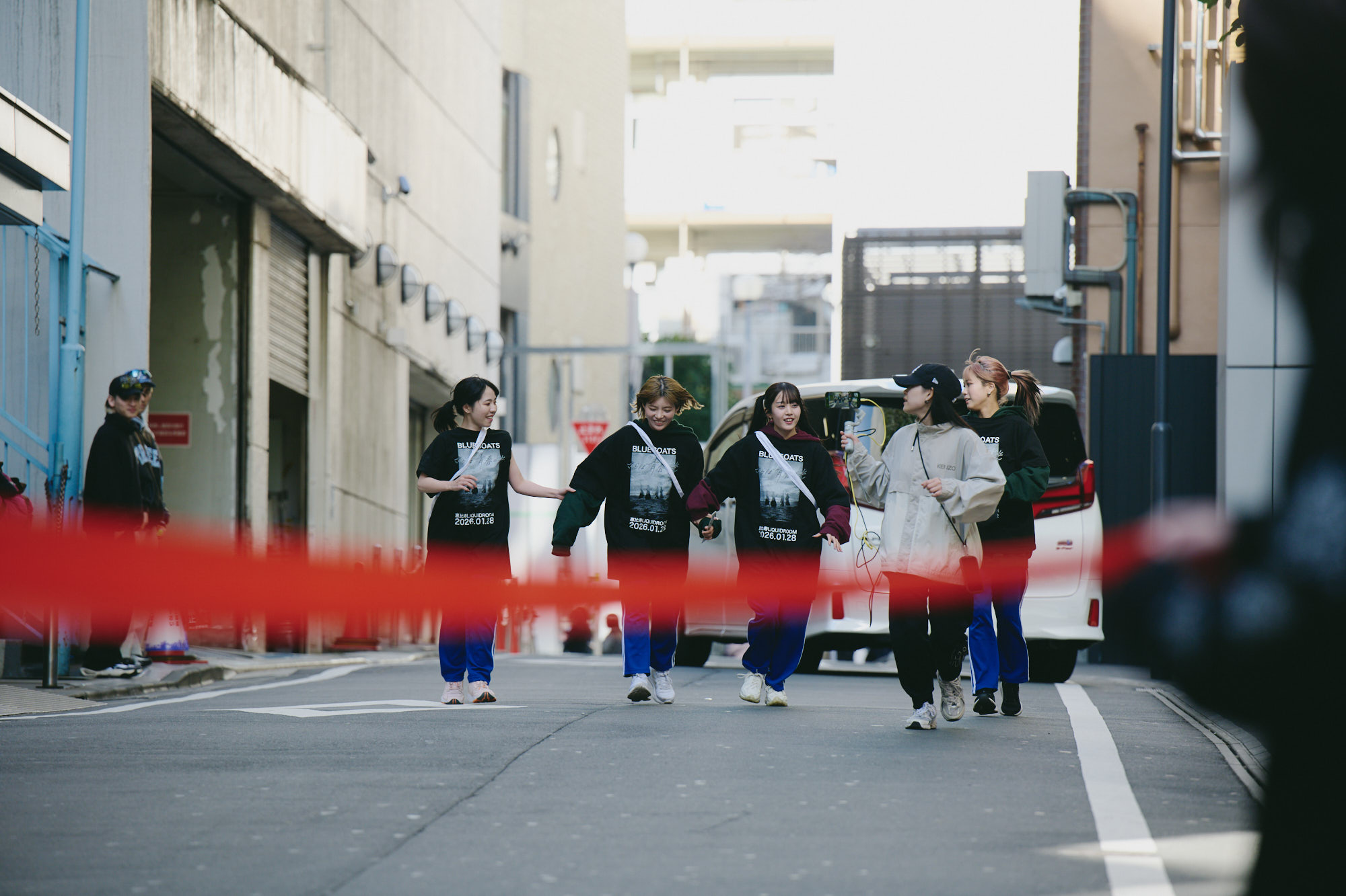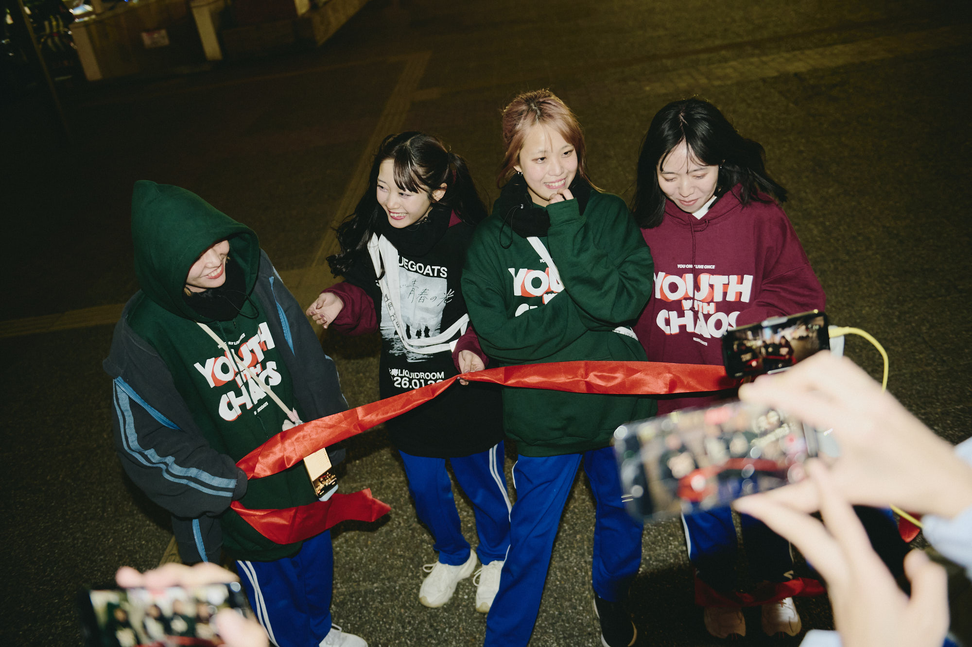 50人以上のファンたちが、拍手と歓声で彼女たちを迎え入れる。ゴールテープが張られている。ゴールテープの手前で、マリンがチャンチーに声をかけた。そして、メンバー4人で手を繋ぐ。