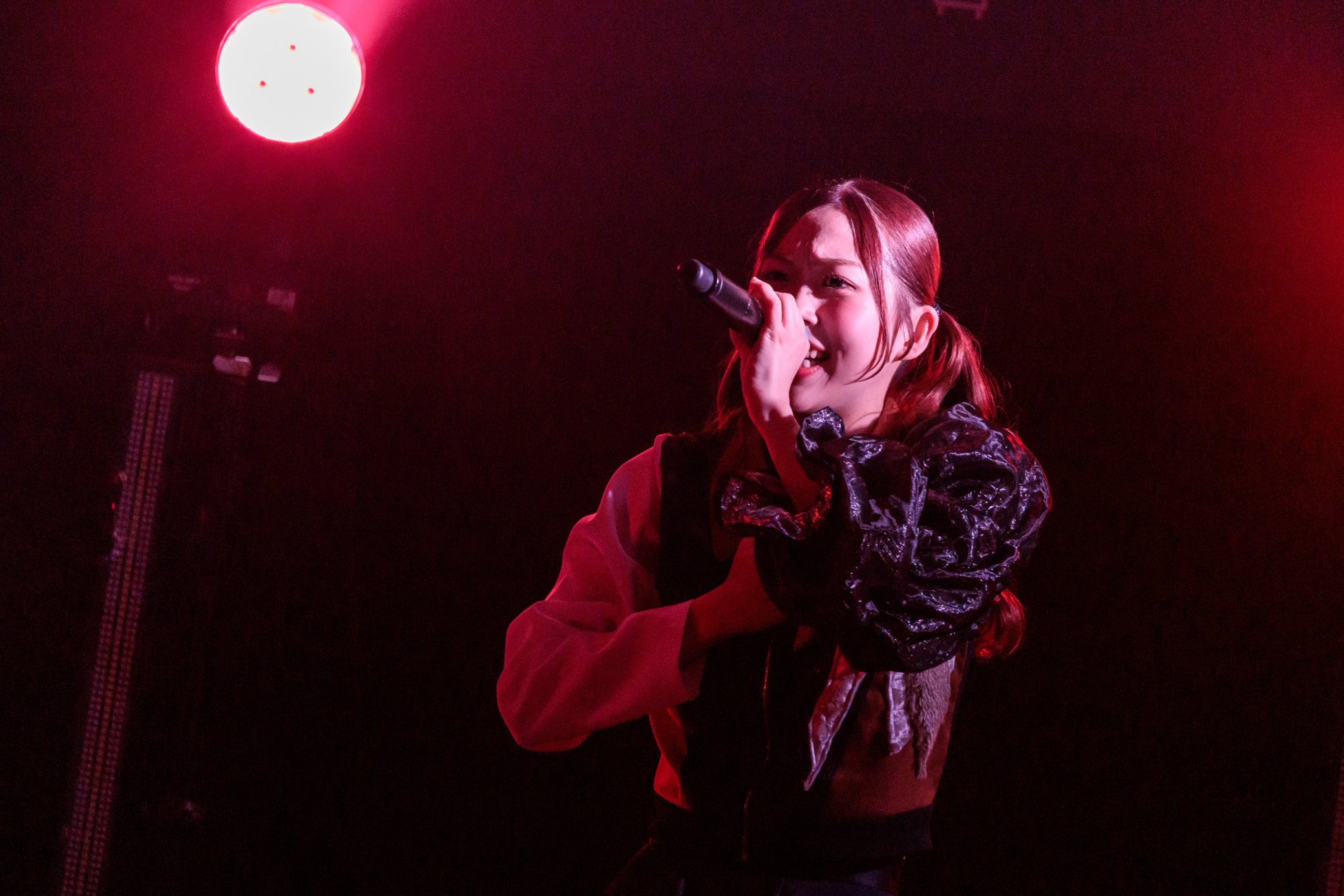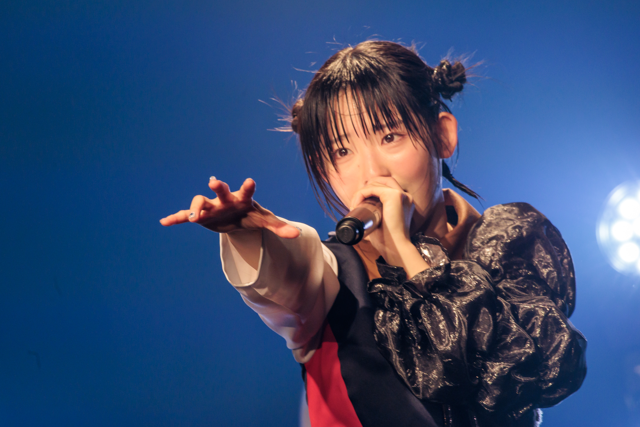ソウルフルなデビュー曲「EGO」、大森靖子作詞作曲の実験的な「私アイドルじゃないです」、「RとC」ではヘッドバンギングが沸き起こる。楽曲途中でコンニチハクリニックが客席に降り、目撃者の上で絶唱する場面も。ランルウの叫びから始まったトップシークレットマンしのだプロデュースのミクスチャー曲「僕の声、跳ね返る」、「JUST ONCE」を経て、コンニチハクリニックのアカペラから「業 TO HEAVEN」がスタート。楽曲の途中でメンバーがサイン入りカラーボールを客席に投げ入れると、会場の熱気はさらに高まった。4人の自信と気合い溢れる表情から、このライブにかける意気込みが伝わってくる。